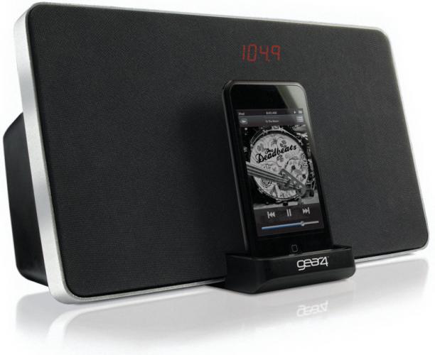Mains powered and measuring approximately 225 x 165 x 100mm (WxHxD) and sporting a black grill with brushed aluminum trim the HouseParty 4 is a general purpose sound-system for iPod.