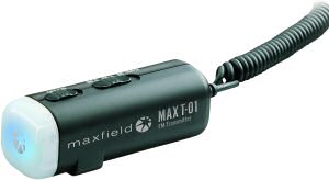 One result of this relaxation of FM transmission restrictions is that I can now bring you my review of the Maxfield MAX T-01. This is a portable audio FM-Transmitter. The basic concept behind this type of device is that it will allow content stored on the portable music player to make use of the output capabilities of your HiFi system or in-car audio set up. Rather than rely on the use of the basic headset for output, you could hear your music played back through the power and tonal capabilities of your superior living room and vehicular systems. To avoid any confusion, it should be made clear that the MAX T-01 does not add FM radio capabilities to your portable device; this would require a completely different type of product.