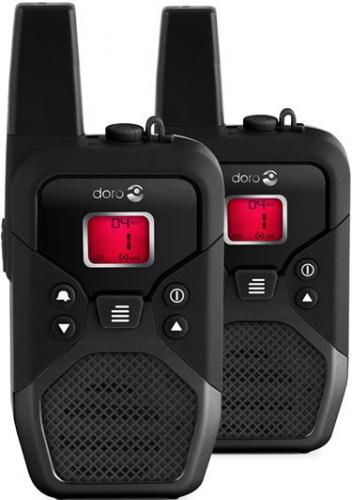 As part of its telephony-based product line-up, Doro has released its wt96 Pro offering. This product is a walkie talkie communication kit. Opening the box reveals a pair of walkie talkie handsets with accompanying docking stations, various power leads, ear-bud style headsets and two packs of AAA x4 rechargeable batteries that fit into each handset.