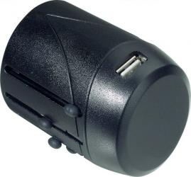 This device, from Swiss Travel Products and sold in the UK by PowerTraveller, a specialist in essential travel accessories, consists of a roughly cylindrical base unit into which all the mains connect pins retract when not needed. It is 5cm tall and comes supplied with two connector caps. One of these is the USB charger module while the other accepts standard mains plugs -- British, European etc.