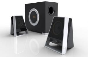 Technical stuff, two 2" (50mm) full-range drivers and one 4" (100mm) side-firing subwoofer. Sound pressure level: 93dB. Total continuous power: 28Watts RMS, each speaker: 7.5 Watts per channel @ 8 Ohms @ 10% THD @ 200 Hz - 20 kHz. Subwoofer:13Watts @ 4 Ohms @ 10% THD @ 50 Hz - 200 Hz single channel loaded. System response:45 Hz - 18 kHz (-10 dB) Signal to noise ratio @ 1 kHz input:>65 dB.