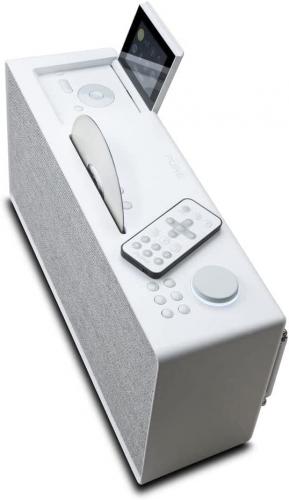 It is available in either black or white either has a fabric front to the unit covering the rather good speakers. The speakers have a 100w output level split between the tweeters and woofers.
